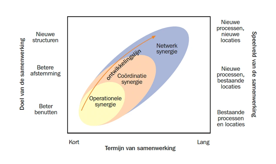 Het onderzoeksproject SYLONET (SYnergievoordelen in LOgistieke NETwerken uit 2003) liet al zien dat synergie de sleutel is: het geheel wordt meer waard dan de som der delen. Er zijn drie niveaus van samenwerken met oplopende synergievoordelen: