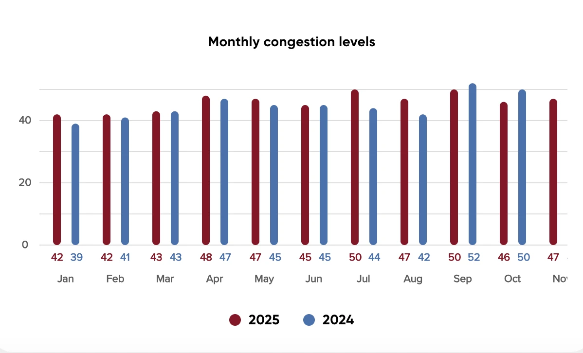 Sinds december 2023 geldt op veel wegen in Amsterdam 30 km/u. Volgens TomTom is de gemiddelde snelheid van het autoverkeer met twintig procent gedaald, naar minder dan 23 km/u. Niet alleen de snelheidsverlaging speelt mee. Het stedelijk ontwerp, de vele afsluitingen en een voortdurende stroom aan wegwerkzaamheden drukken het verkeer verder in de rem.
